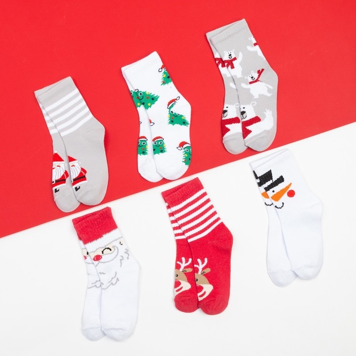 Подарочный Подарочный набор носков адвент, 6 пар адвент, 6 пар "С Новым Годом" , 14-16 см