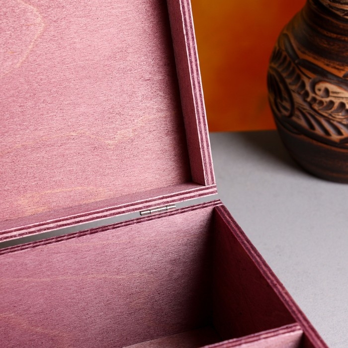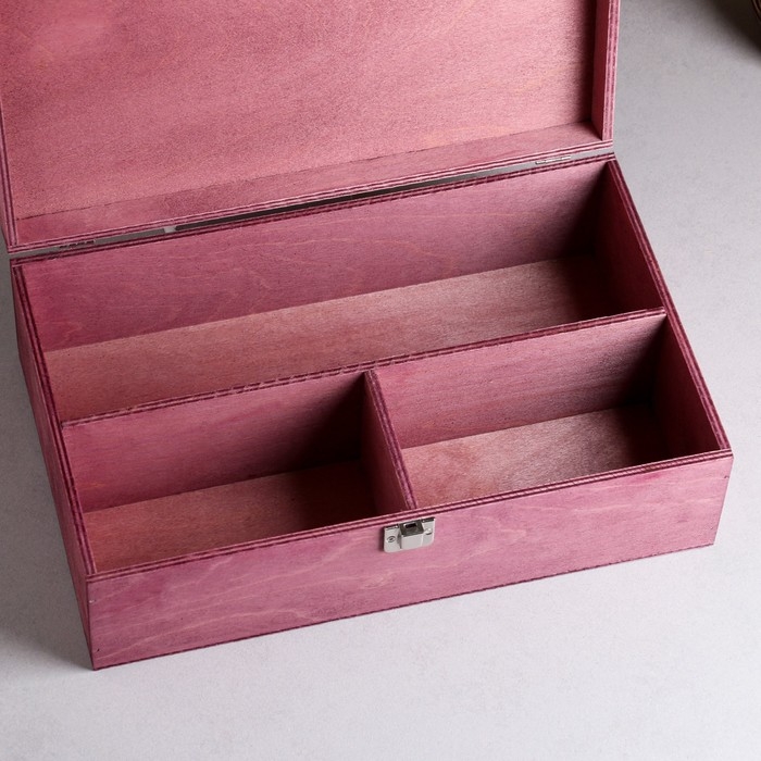 Подарочный ящик 34×21.5×10.5 см деревянный 3 отдела, с закрывающейся крышкой фиолетовый