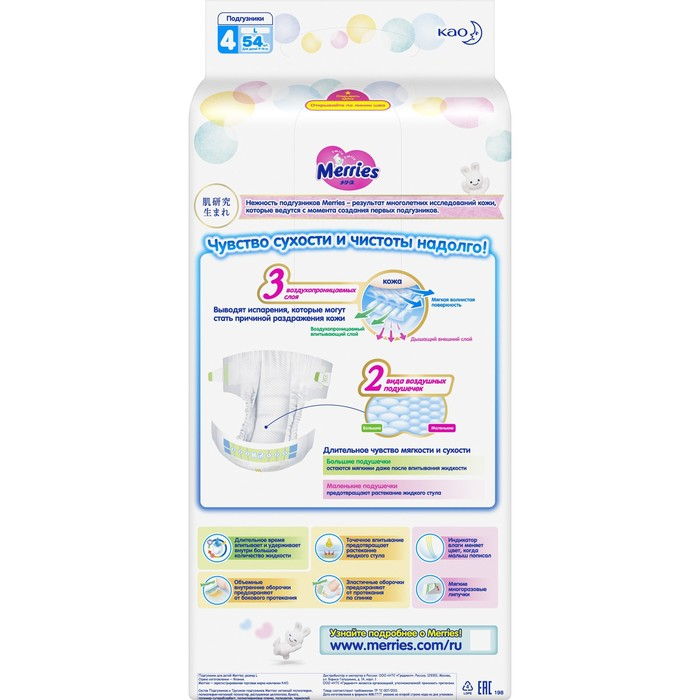 Подгузники Merries L (9-14 кг), 54 шт
