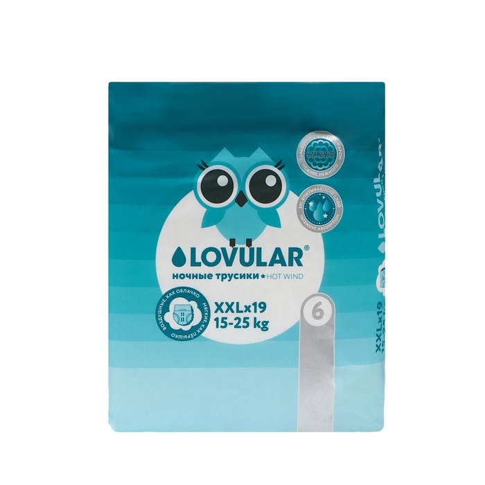 Подгузники-трусики LOVULAR HOT WIND ночные, ХХL 15-25 кг, 19 шт.