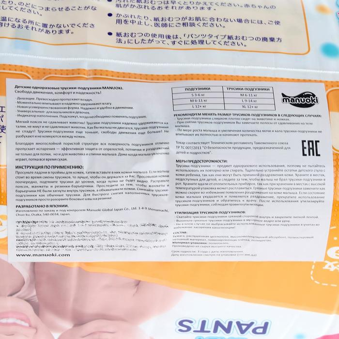 Подгузники-трусики Manuoki XXL 15+ кг, 36 шт