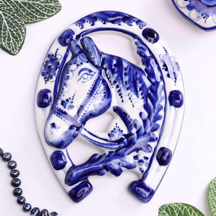 Подкова "Лошадь", гжель, фарфор, 22х16 см
