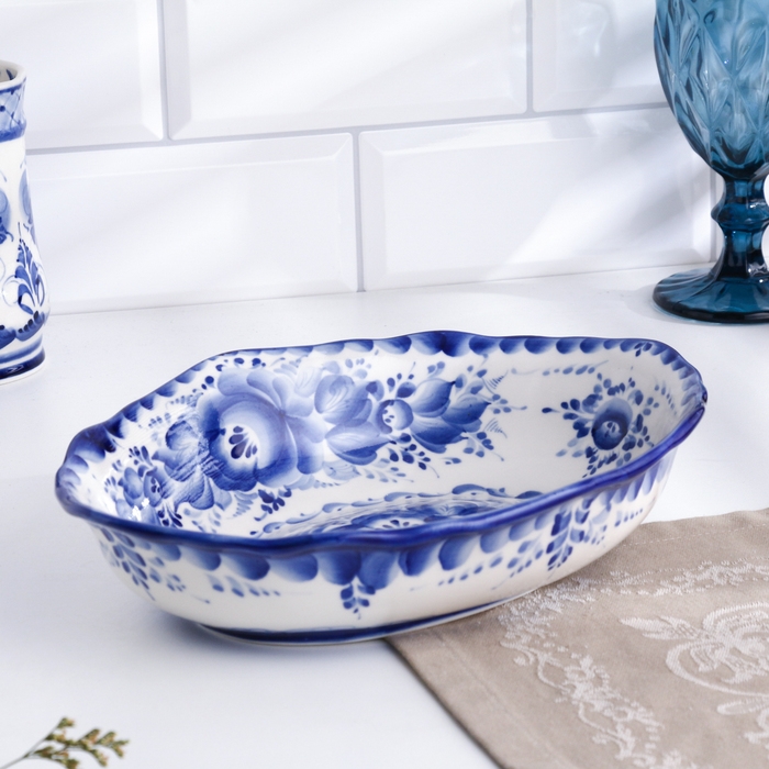 Поднос "Цветы", овальный, 10 х 29 см, гжель
