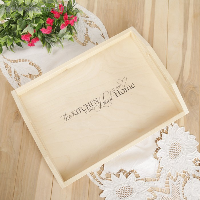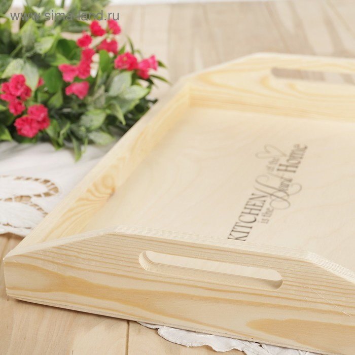Поднос деревянный с декором, 40×30×7,5 см, сосна