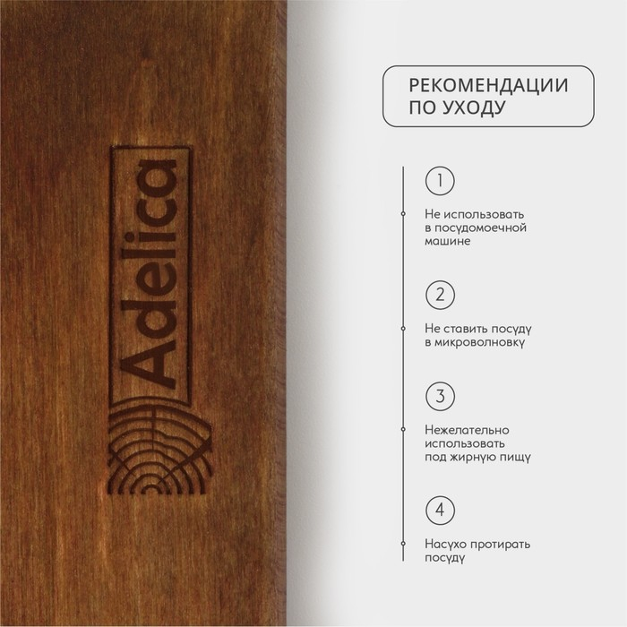 - Изделие нужно обязательно мыть вручную в тёплой воде. Замачивание в раковине повредит его: от воды древесина может испортиться.