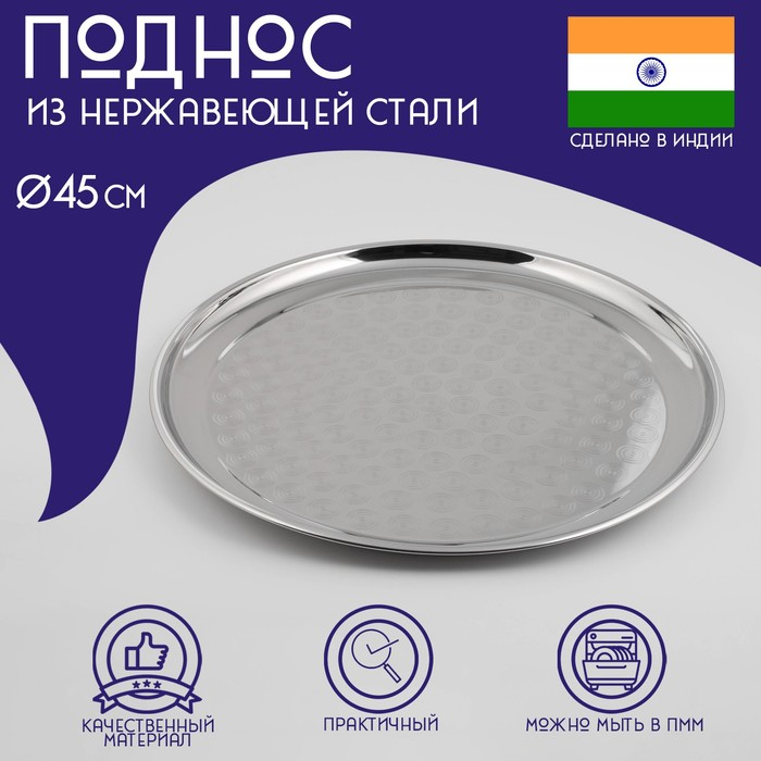 Поднос из нержавеющей стали Доляна «Индия», d=45 см, цвет серебряный
