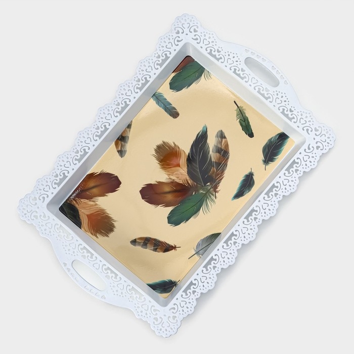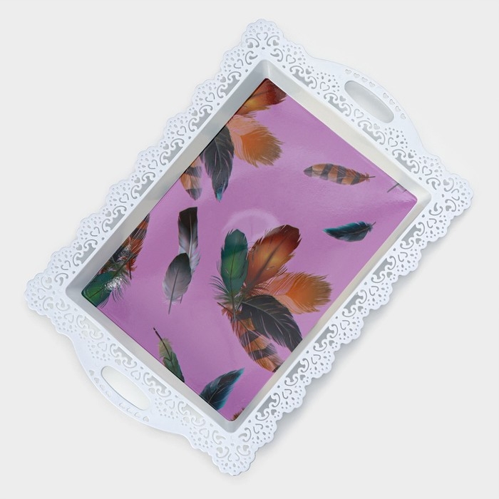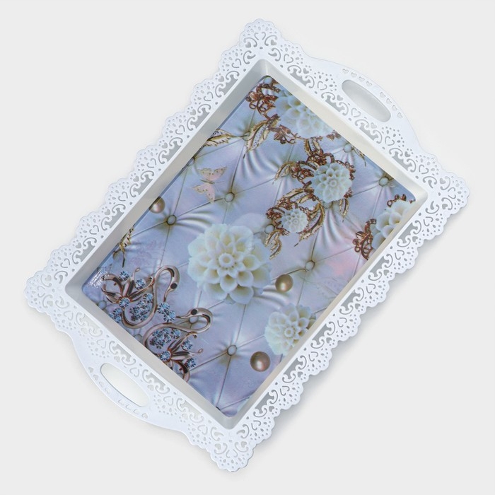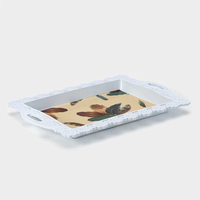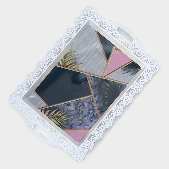 Поднос пластиковый прямоугольный «Ажурная кайма», 35×24×2 см, цвет МИКС