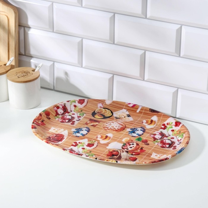 Поднос пластиковый «Сладости», 38×28×2,5 см, цвет МИКС