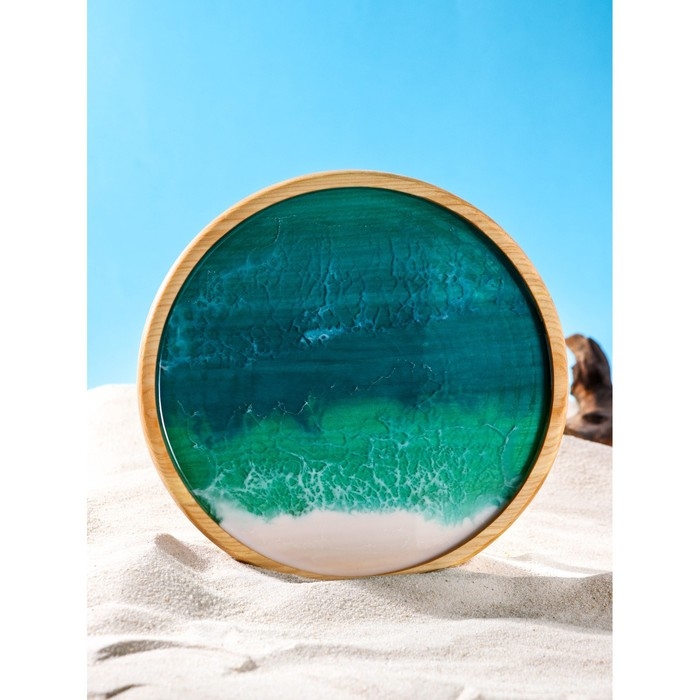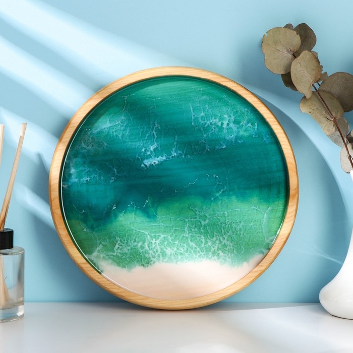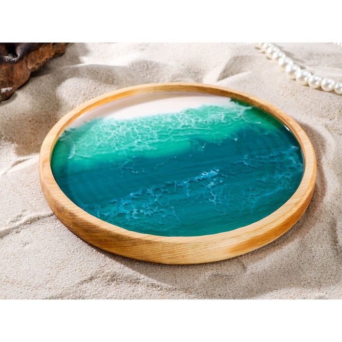 Поднос с эпоксидной пищевой смолой Adelica, 25×2,5 см, цельный массив кедра, рисунок МИКС