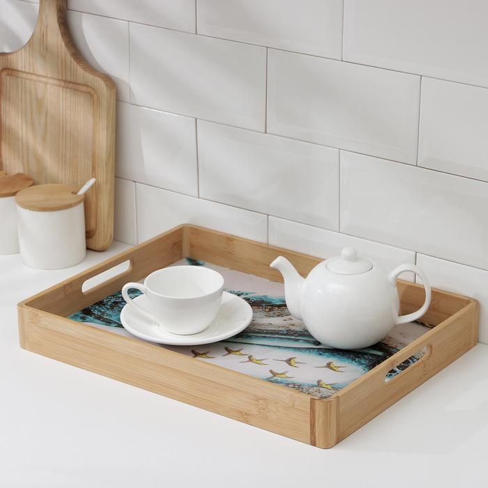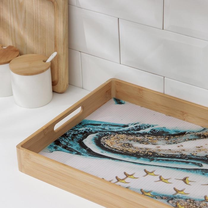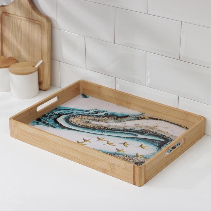 Поднос с ручками Доляна «Лазурный берег», 41×30×5 см, бамбук