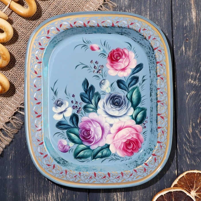 Поднос с жостовской росписью, 24 х 20 см