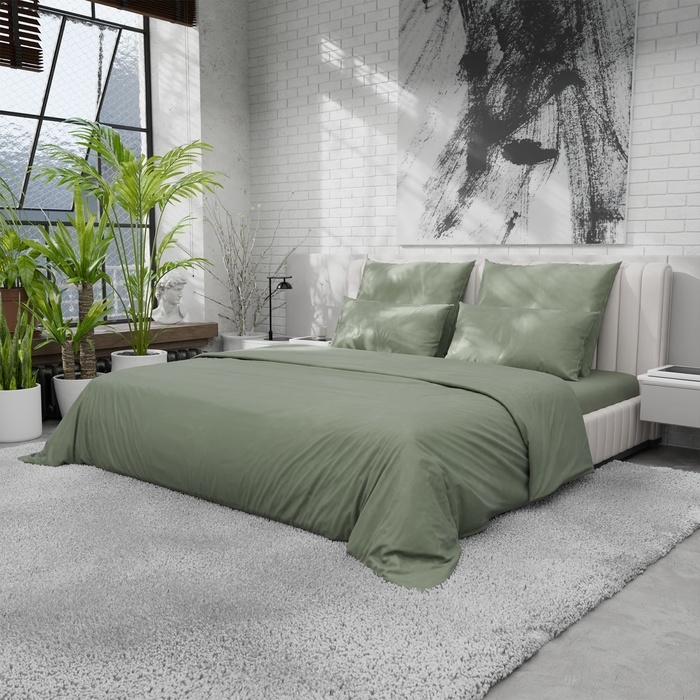 Пододеяльник 220ТС Этель 200*220 см, цв.олива, сатин, 100% хлопок