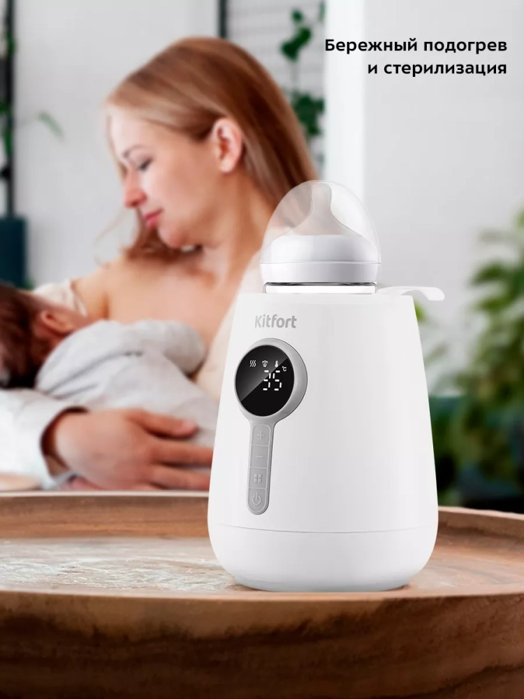 В подогревателе бутылочек Kitfort КТ-2328 можно подогреть и разморозить детское питание или молоко, простерилизовать мелкие детские предметы, такие как соски, пустышки и прочее, а также разогреть пюре в баночках. У прибора три режима работы: «Быстрый нагрев», «Поддержание температуры» и «Стерилизация».