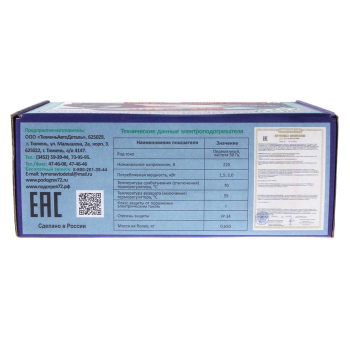 Подогреватель двигателя универсальный "Старт-М" с терморегулятором на 70 градусов, 1,5 Кв 7336165