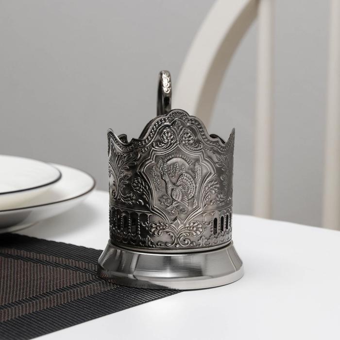 Подстаканник «Глухарь», d=61 мм, никелированный, с чернением