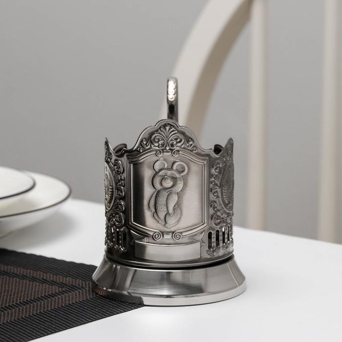 Подстаканник «Олимпийский мишка», 2 герба, d=72 мм, никелированный, с чернением