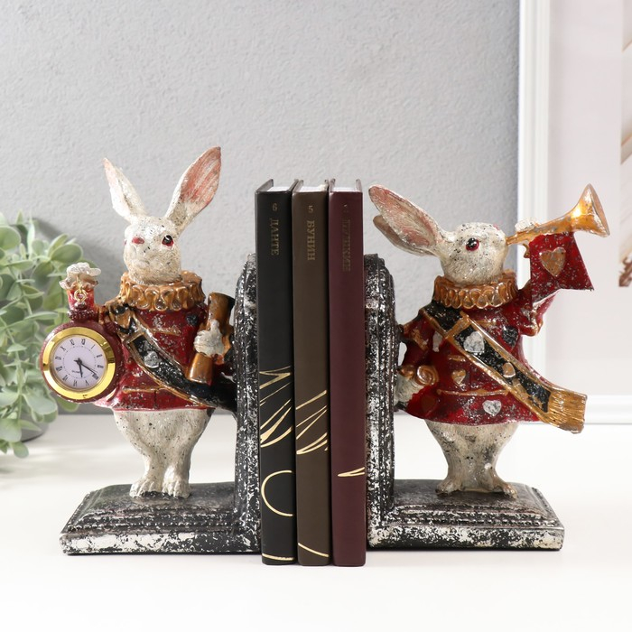 Подставка-держатель для книг интерьерная с часами"Заяц - паж" н-р из 2-х штук 2,5х21х8,5см