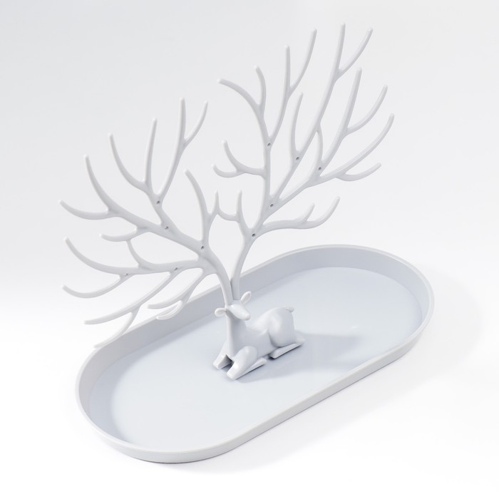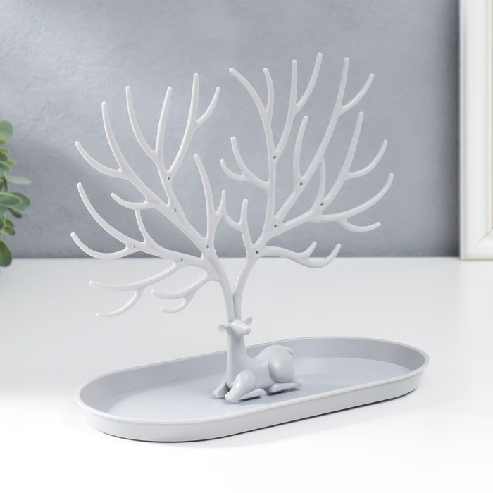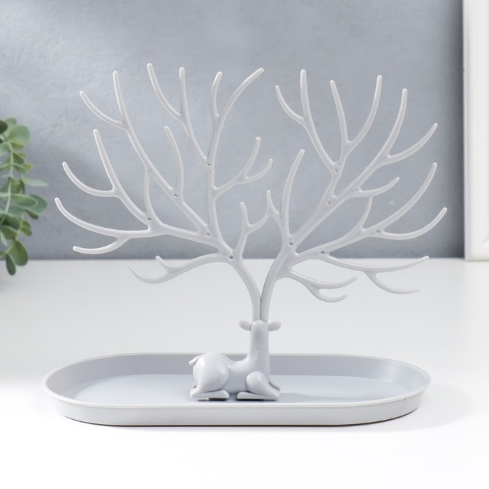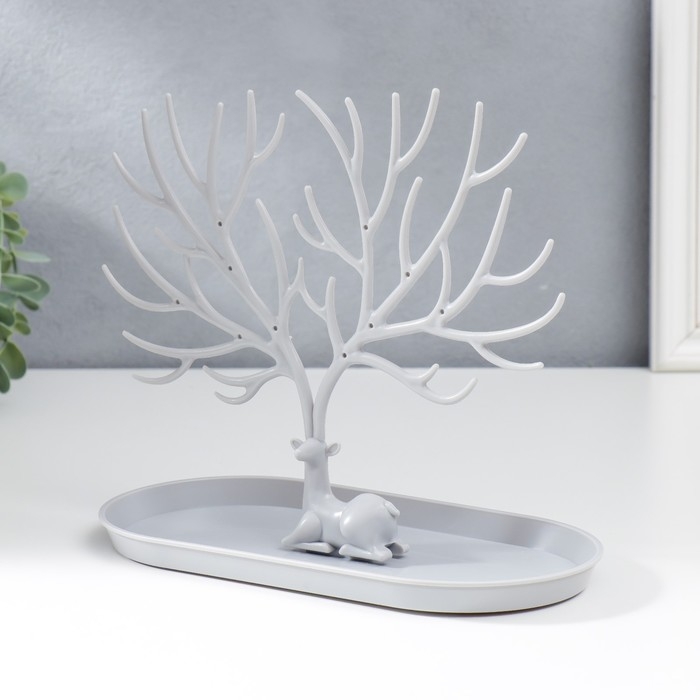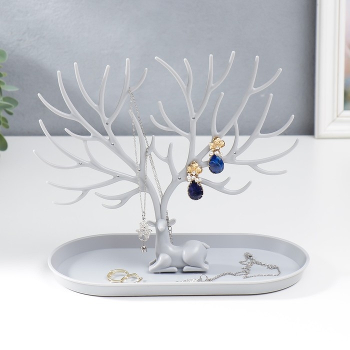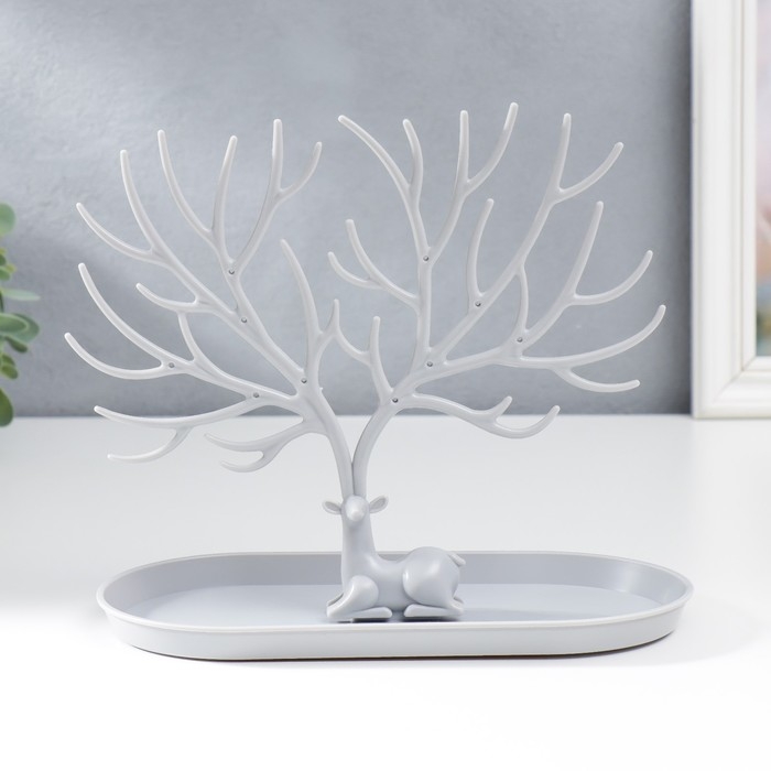 Подставка для бижутерии пластик "Олень с ветвистыми рогами" серый 21,5х12,5х24,5 см