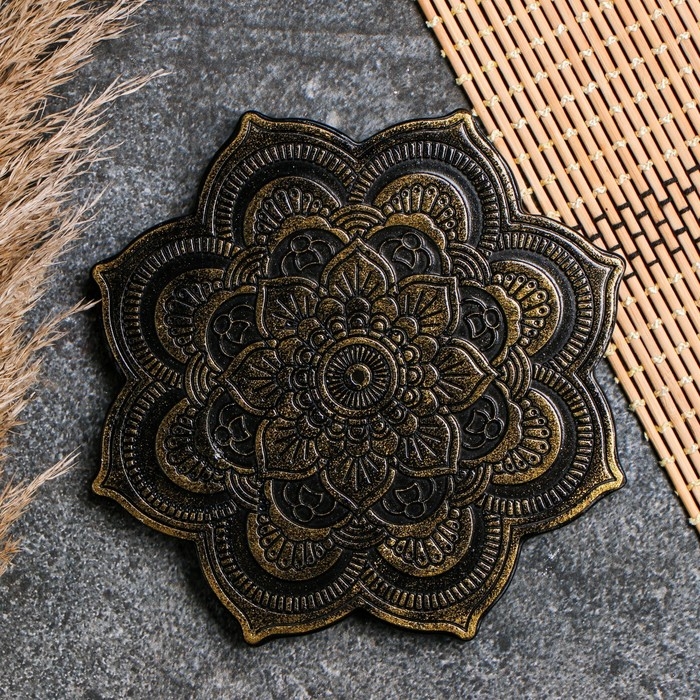 Подставка для благовоний "Мандала" черное золото, 16х2см