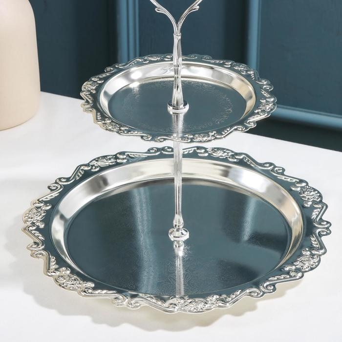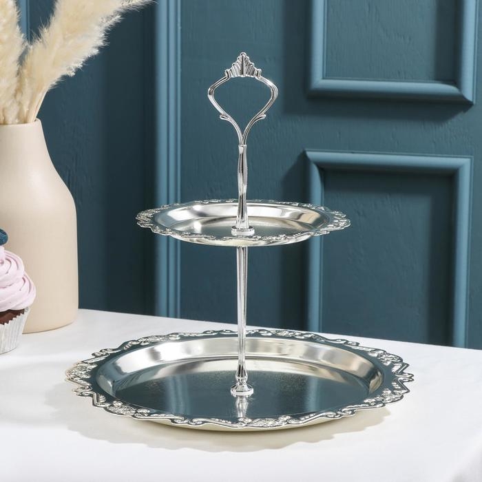 Подставка для десертов и фруктов 2-х ярусная «Изида», 25×25×26 см, цвет серебряный