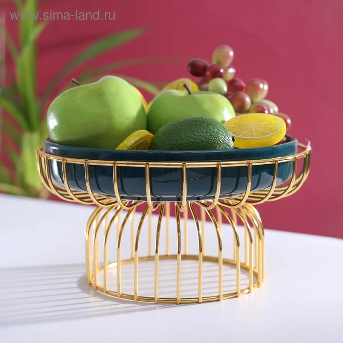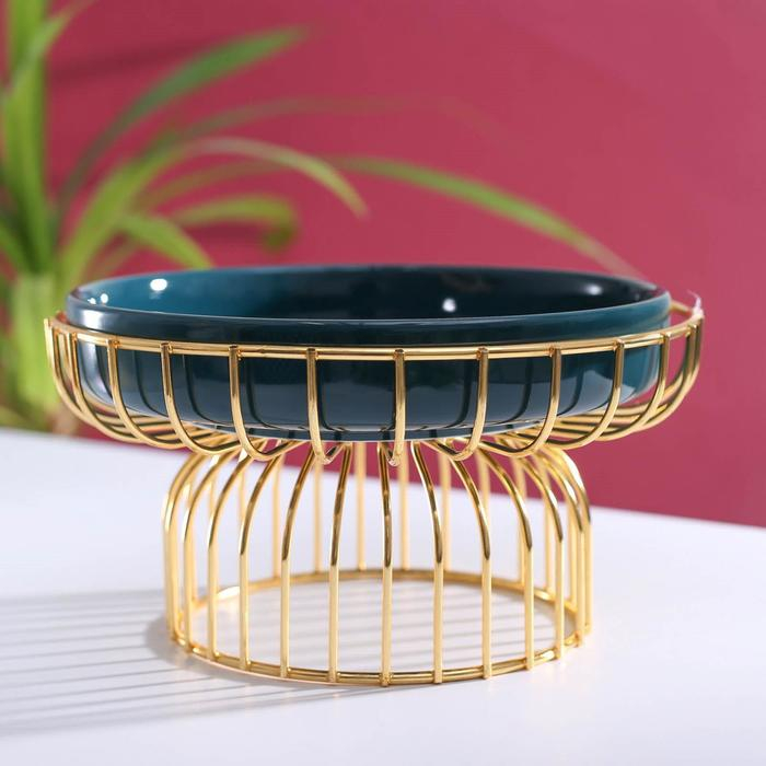Подставка для десертов керамическая на металлической подставке «Изумруд», 23×12 см, цвет зелёный