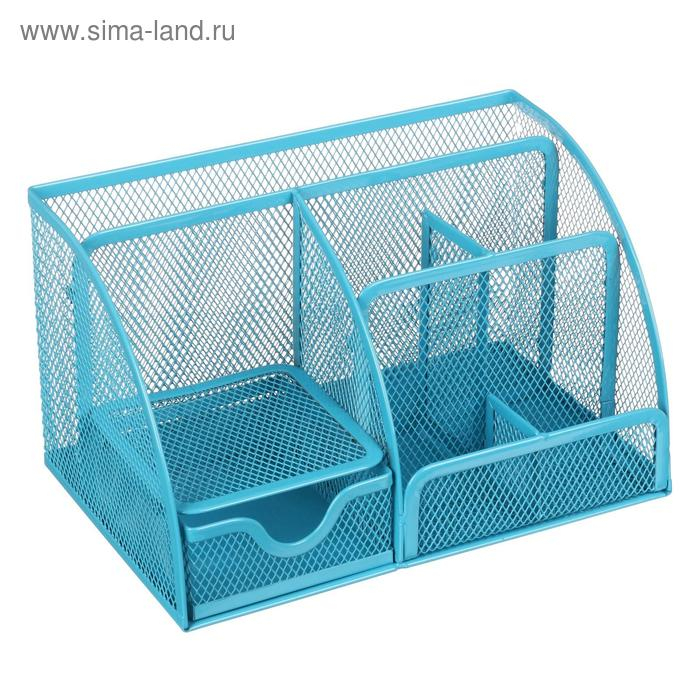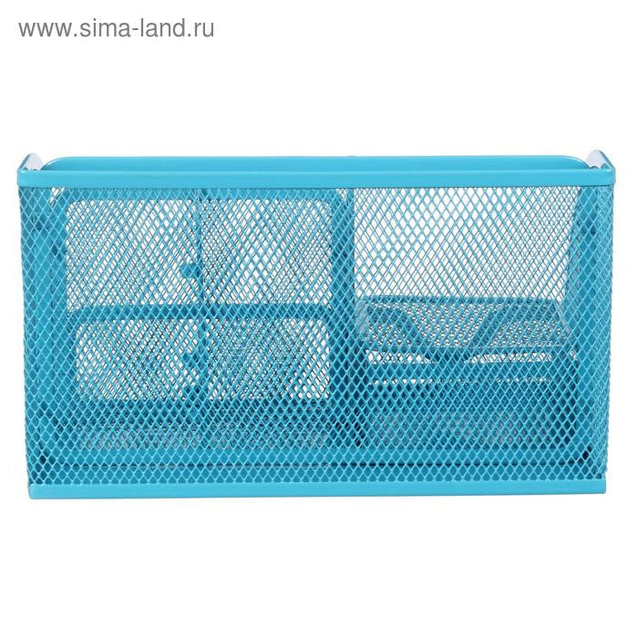 Подставка для канцелярских мелочей 7 отделений, сетка металл, голубая
