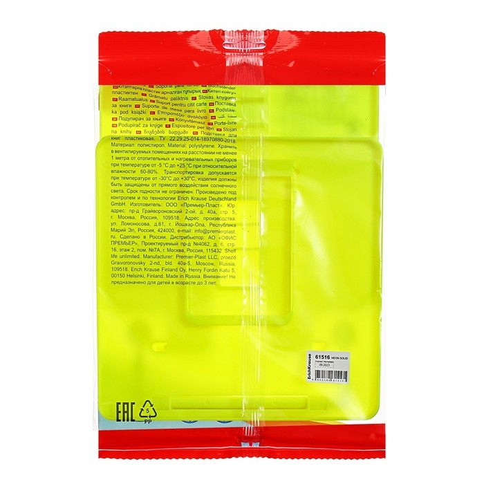 Подставка для книг ErichKrause "Neon Solid", с таблицей умножения, желтая