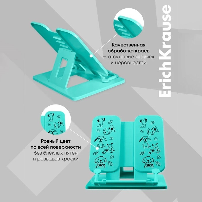 Подставка для книг пластик, ErichKrause, Little Dogs, мятный