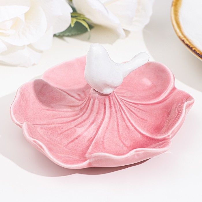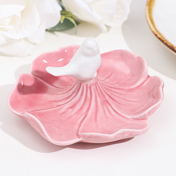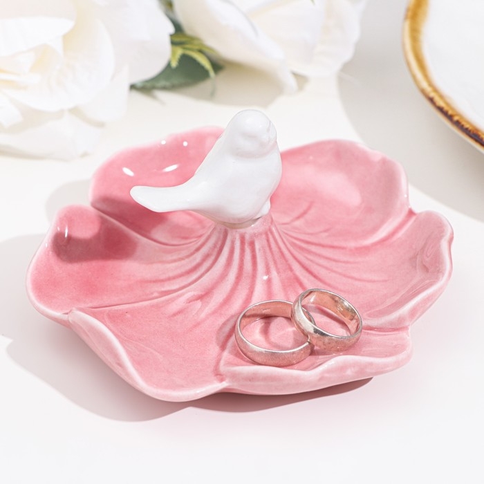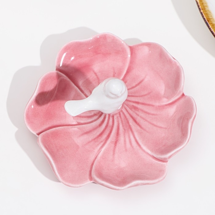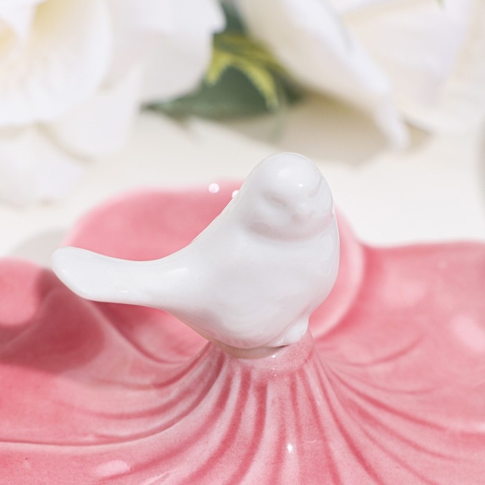 Подставка для колец "Птичка на цветке", розово-белый, 12х6 см