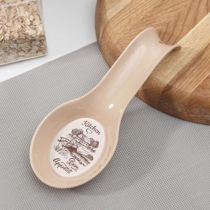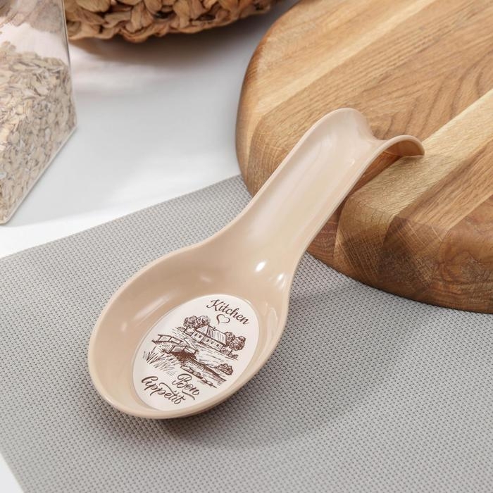 Изделие располагают рядом с плитой и кладут на неё ложку или лопатку, которыми помешивают или переворачивают блюда. Подставка под ложку, помимо основного назначения, служит оригинальным украшением кухни. Это изделие можно подобрать под определённый дизайн интерьера. Подставку можно повесить на стену в качестве декора или расположить на полке рядом с посудой, гармонирующей по цветовой гамме.