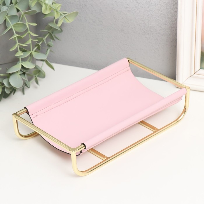 Подставка для мелочей металл, кожзам "Сканди" бледно-розовая 21х12х5 см