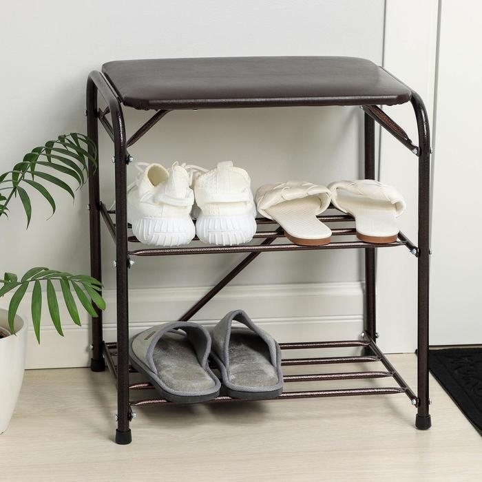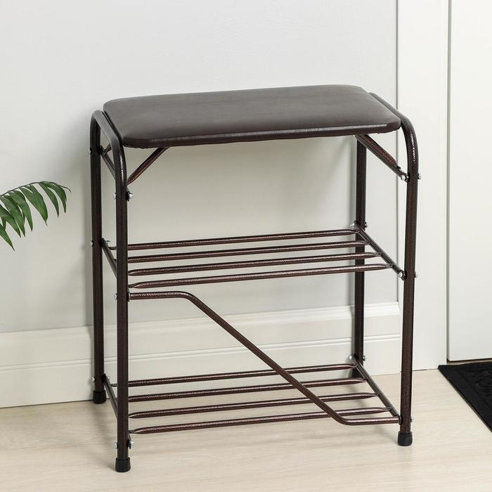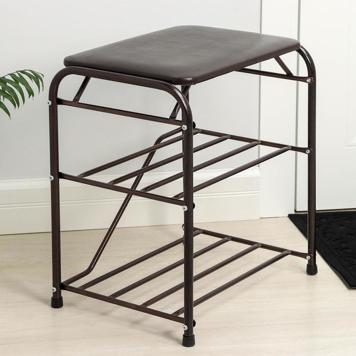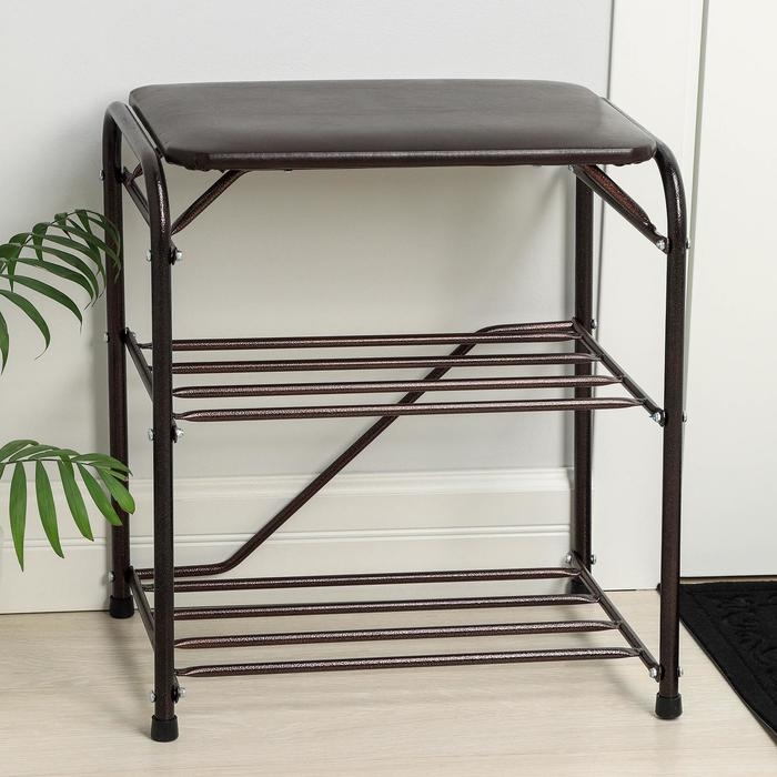 Подставка для обуви, 3 полки, 45 см, с сиденьем, цвет медный антик