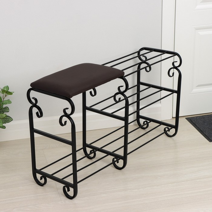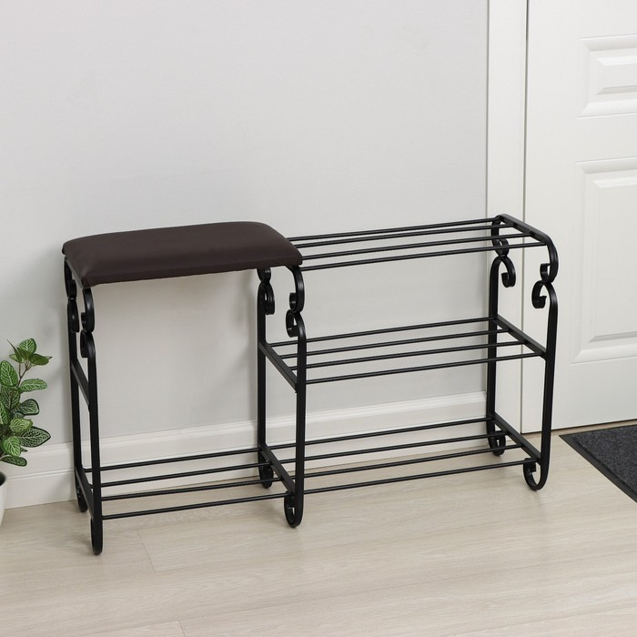Подставка для обуви с сиденьем «Эталон», 3 яруса, 90×30×60 см, цвет чёрный, форма МИКС