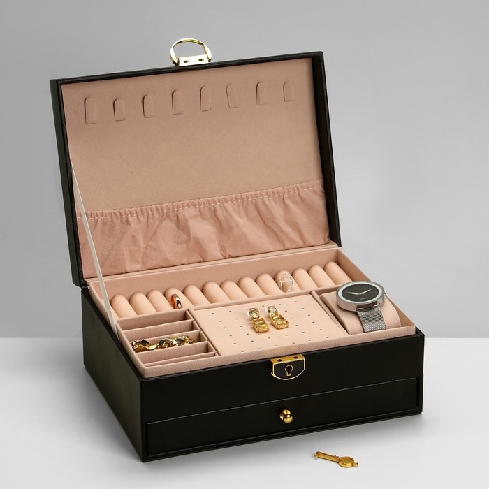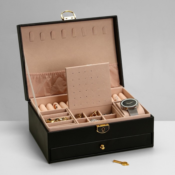 Подставка для украшений «Шкатулка» 2 яруса, 17×23×10 см, цвет чёрный