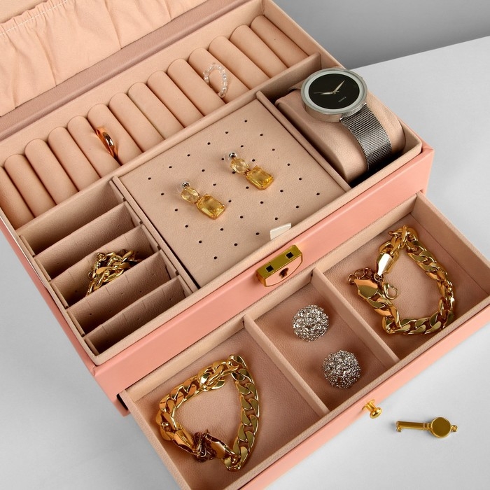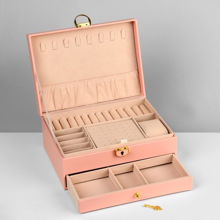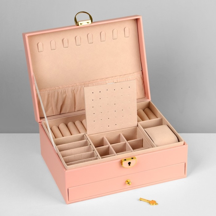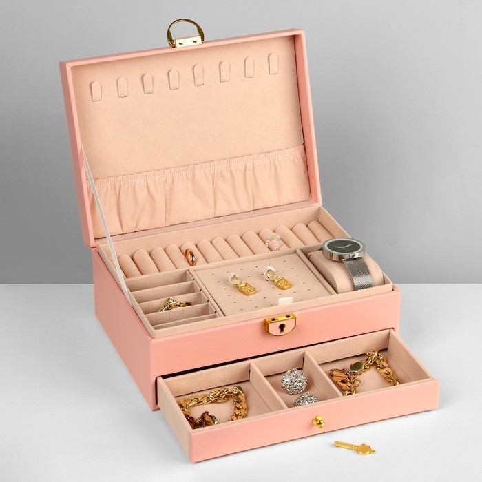 Подставка для украшений «Шкатулка» 2 яруса,17×23×10 см, цвет розовый