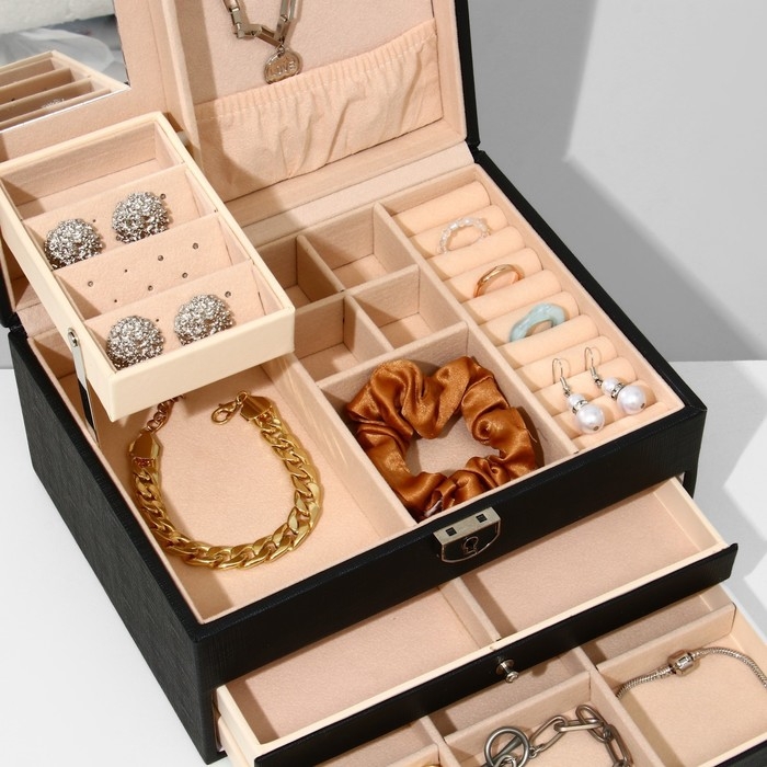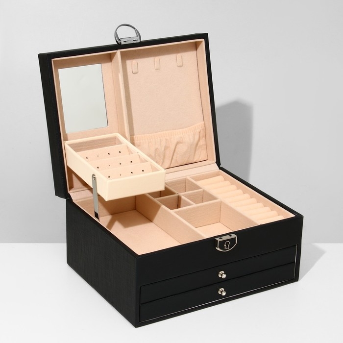 Подставка для украшений «Шкатулка» раздвижная с зеркалом, 22×17×11,5, цвет чёрный