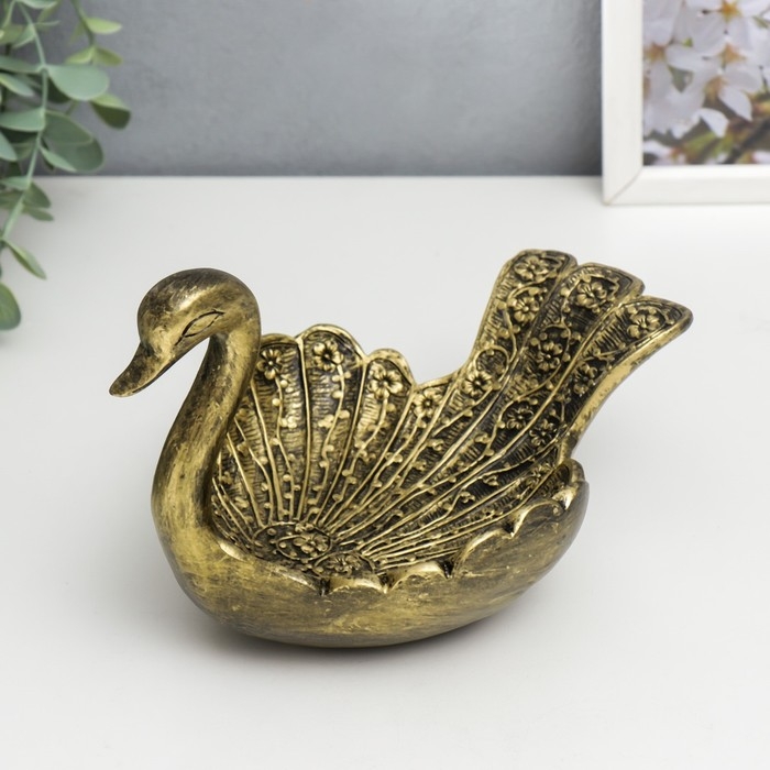 Подставка интерьерная полистоун "Лебедь" под латунь 21х14х15 см