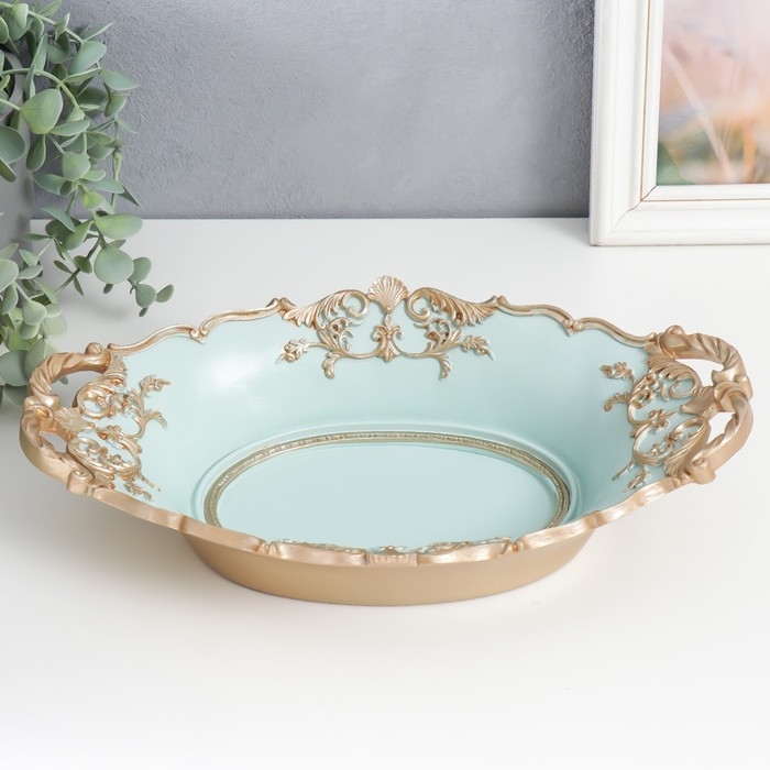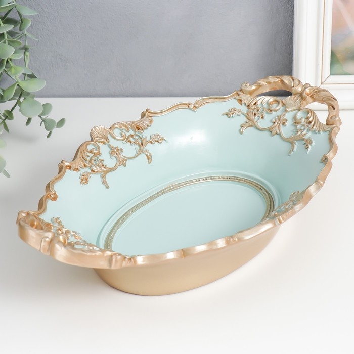 Подставка интерьерная полистоун "Золотистые узоры" голубая 32х20х6 см