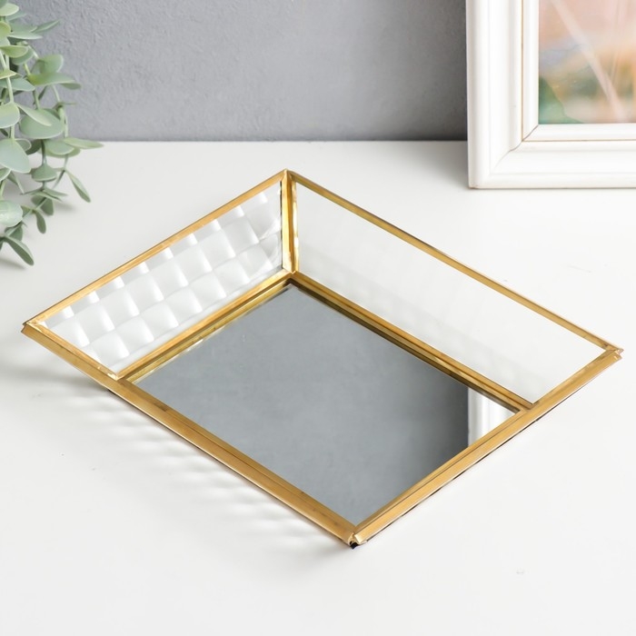 Подставка интерьерная стекло с зеркалом прямоугольная "Волна" 4х16х21 см
