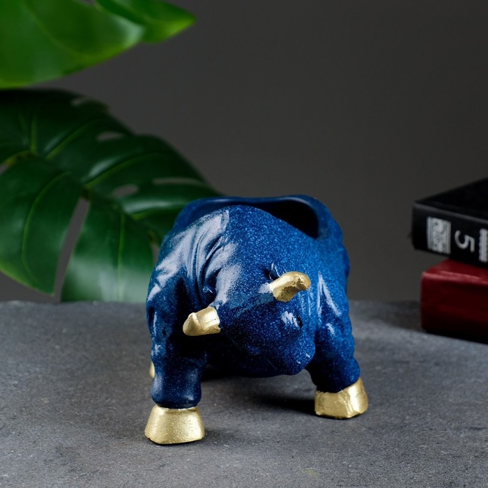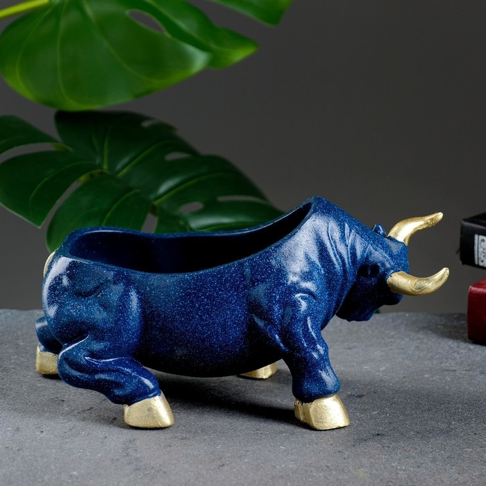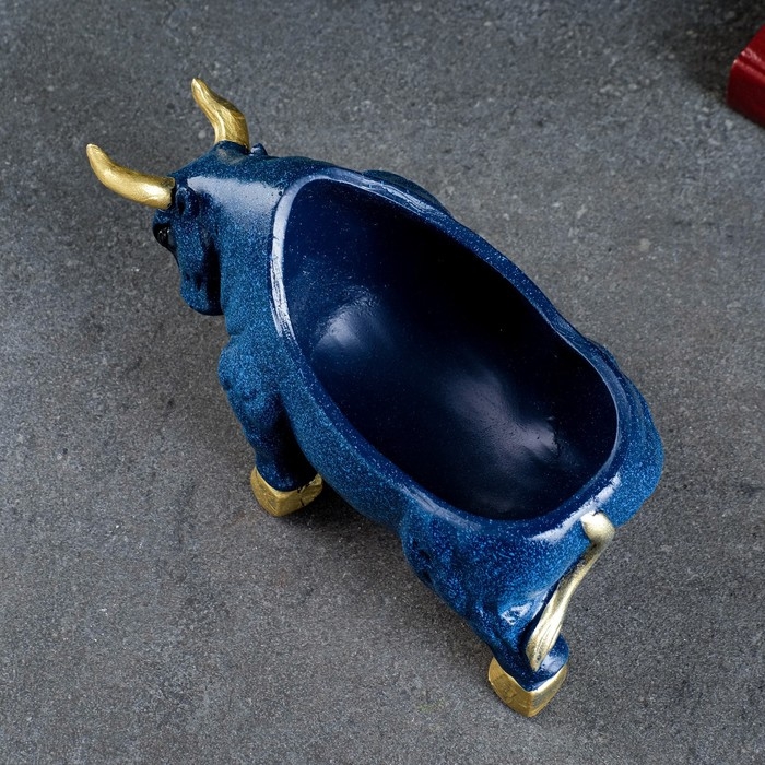 Подставка конфетница "Бык" синий мрамор, 12х24х11см