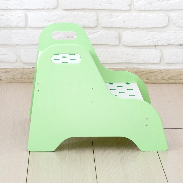 Подставка на две ступеньки послужит функциональным украшением для детской комнаты, а своим интересным дизайном привлечёт внимание ребёнка.