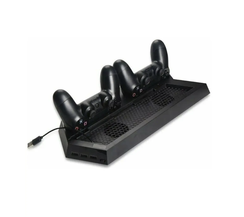 Универсальная вертикальная подставка для консоли PS4, вентилятор-кулер с двойной зарядной станцией и 2 концентратором 1 USB-порта. Не только работают для контроллеров PS4/PS4 PRO/PS4 Slim, но также могут заряжать контроллеры PS4/Playstation 4/DualShock 4, а также ваш мобильный телефон, внешний аккумулятор или другое usb-устройство одновременно. Какой потрясающий инструмент.Универсальная вертикальная подставка для консоли PS4, вентилятор-кулер для вашей PS4/PS4 PRO/PS4 Slim cool и calm с вертикальной подставкой для охлаждения; двойная зарядная станция с 2 зарядными портами для зарядки двух контроллеров PS4 shock, что позволяет экономить время, когда требуется зарядка контроллеров; 2 концентратора и 1 usb-порта с мощным выходом для передачи данных и зарядки.Лучшие аксессуары для PS4, чтобы держать вашу PS4/PS4 PRO/PS4 стройной. Не нужно беспокоиться, что ваша ps4 перегревается и горит ваш стол от длительных часов игры.Компактный дизайн: Обычно ваша PS4/PS4 PRO/PS4 занимает Горизонтальное пространство в вашей комнате. Тем не менее, с этой вертикальной подставкой, ваша PS4/PS4 PRO/PS4 теперь стоит вертикально, экономя вам много места, одновременно охлаждая вашу ps4.