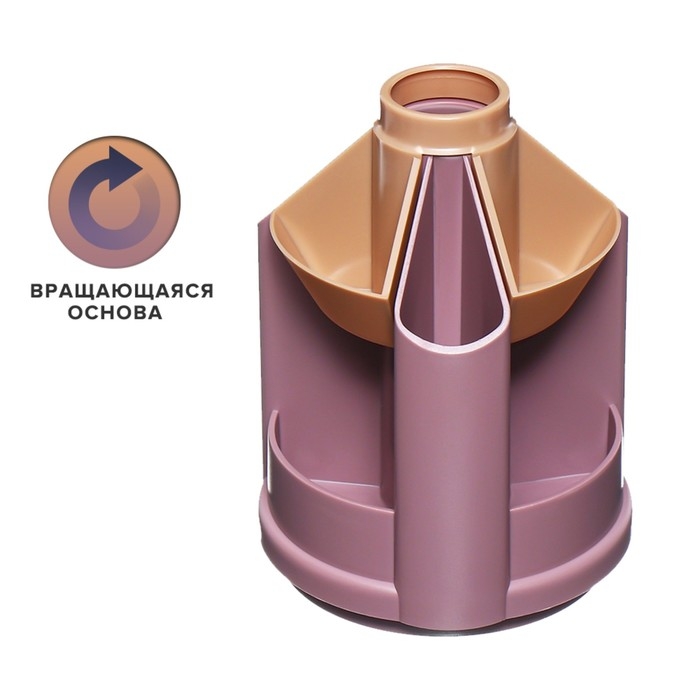 Подставка для удобного хранения настольных принадлежностей. Оснащена вращающимся механизмом и изготовлена из высококачественного пластика.