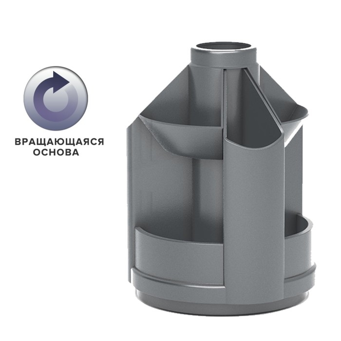 Подставка для удобного хранения настольных принадлежностей. Оснащена вращающимся механизмом и изготовлена из высококачественного пластика