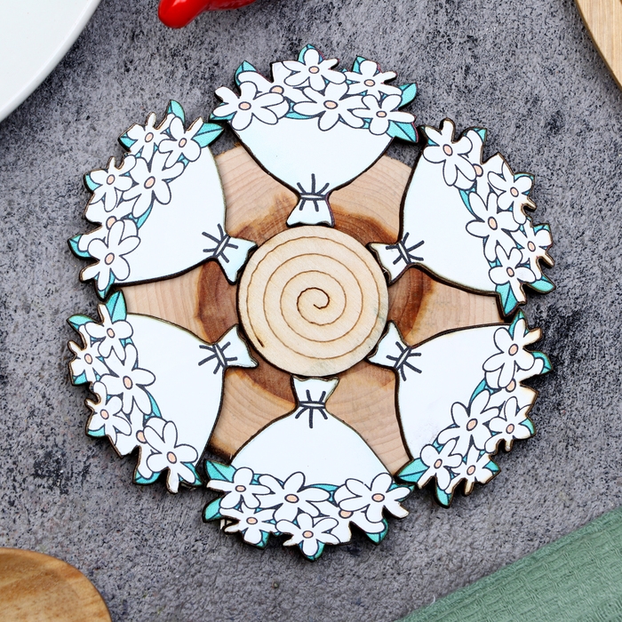 Подставка под горячее «Букет ромашек», D=12 см, можжевельник