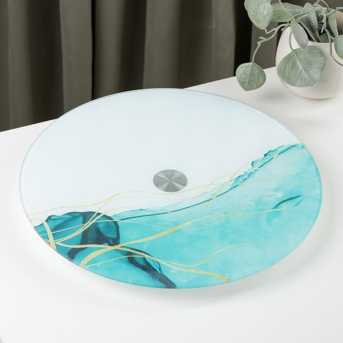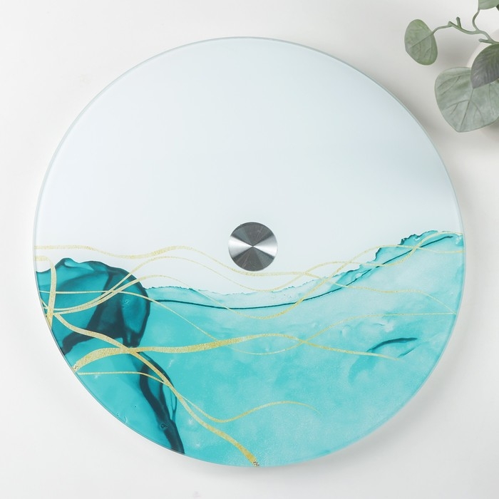 Подставка стеклянная для торта вращающаяся Magistro «Мраморный бриз», d=32 см, цвет голубой