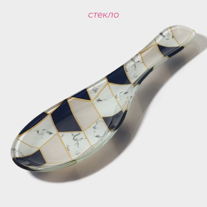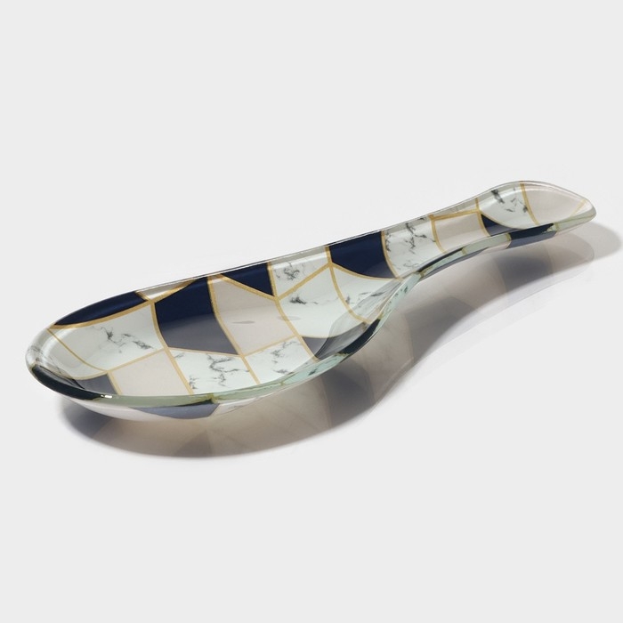 Подставка стеклянная под ложку Доляна «Розовый мрамор», 23,5×8,3×1,5 см