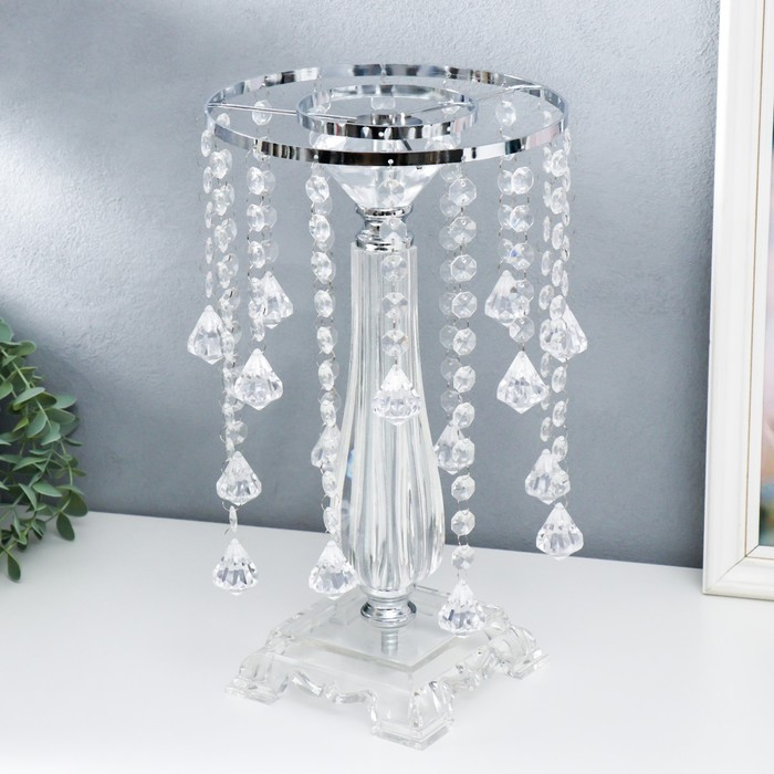 Подсвечник акрил на 1 свечу "Хрустальные капли" серебро 34х20х20 см