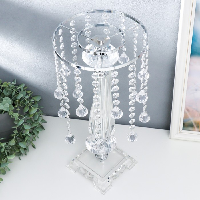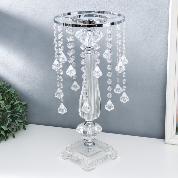 Подсвечник акрил на 1 свечу "Хрустальные капли" серебро 44х20х20 см