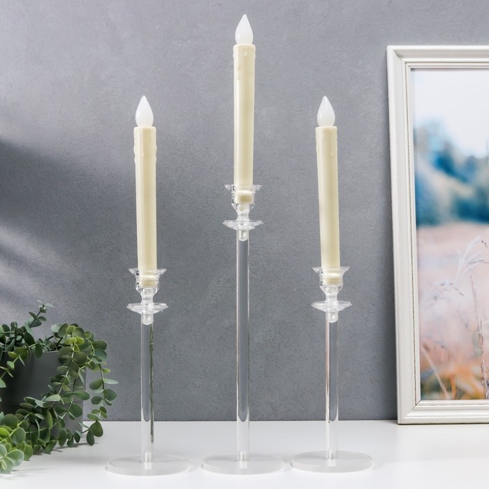 Подсвечник акрил "Прозрачность" набор 3 шт 44х10х10 50х10х10 55х10х10 см